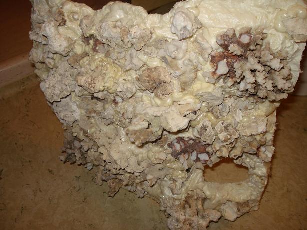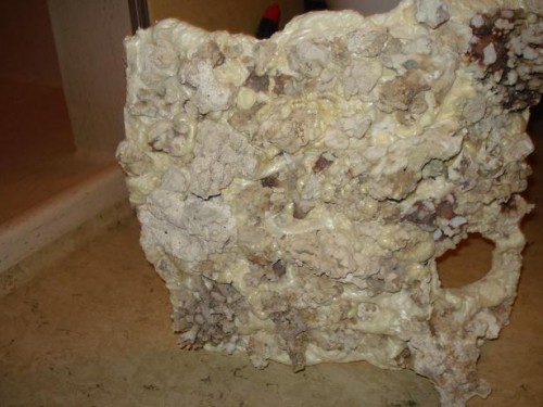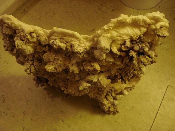 Lavet af skum og døde sten. skummet er blevet formet efter 20 min, så der ikke er så meget luft i..