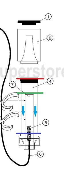 Start luftpumpen og juster luftmængden så boblerne når op til den røde linie og samtidig sådan at der trækkes bobler ned i yderrøret(ved de lyseblå pile).