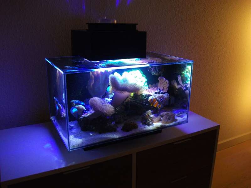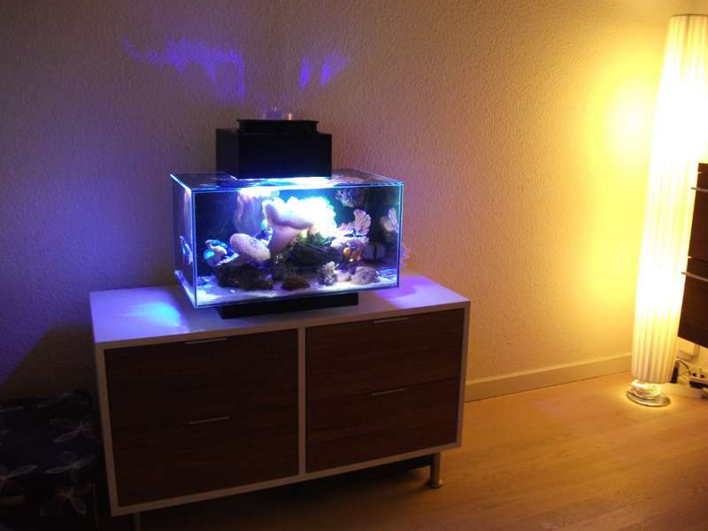Saltvandshobbyen kan jeg ikke prale af at have mange års erfaringer med, men det hele startede med et par kollegaer, som mente, at et ”design” akvarie indeholdende salt var vejen frem, og dette blev godkendt på hjemmefronten – det skulle selvfølgelig bare se ordentlig ud, være lydløst, billigt i anskaffelse og kræve minimal vedligeholdelse. Som en god overtaler/sælger, så gik den jo rent hjem
