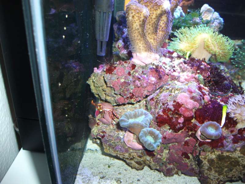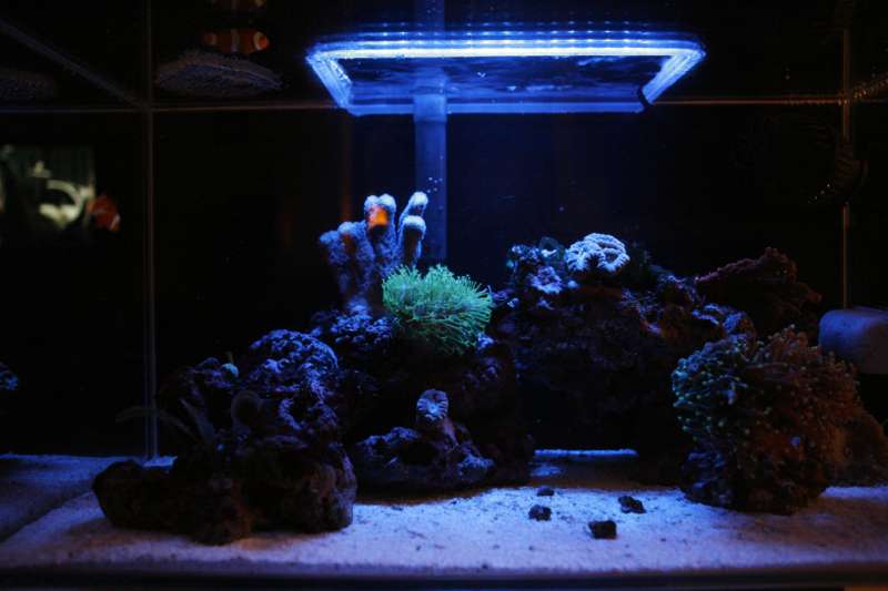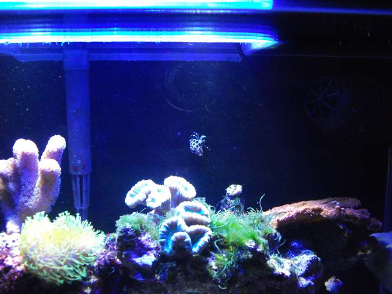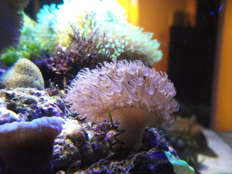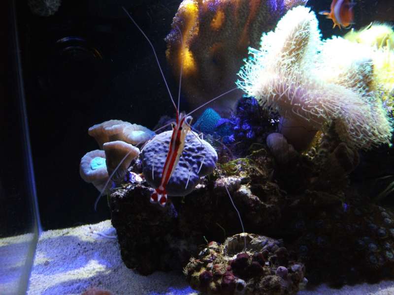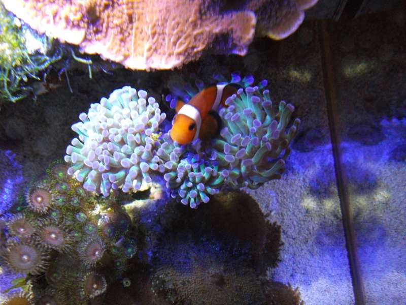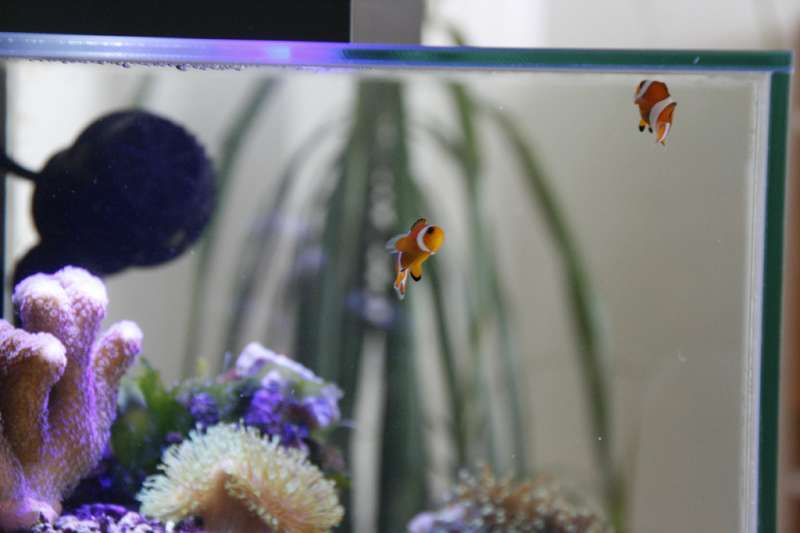 Jeg har også haft andet liv i akvariet men med erfaring fundet ud af, at det kører godt, som det er nu. Jeg startede med 2 stk. klovnfisk, men desværre døde hunnen, og jeg prøvede at matche hannen med en anden hun (saddelback mutation), men de endte desværre med at slås lige pludseligt efter månedsvis, hvor de ellers så ud til at arte sig godt, og på under et døgn var den nyeste i akvariet blevet så dårlig, at jeg desværre ikke kunne redde den (jeg prøvede at få den i karantæne hos John i Risskov).