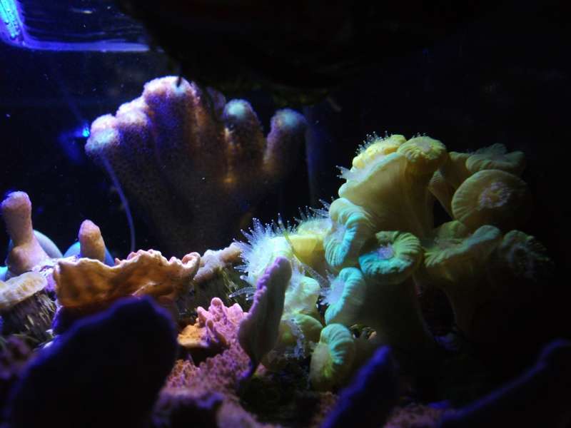 Væksten på korallerne har generelt været god, og jeg har også været nødt til at fragmentere i de fleste koraller af flere omgange. Specielt min grønne Sarcophyton og Stylophora ”overskygger” resten lidt (bogstaveligt talt), og Stylophoraen er lige ved vandoverfladen nu.
