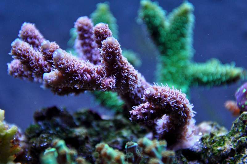 - 1 stk. Acropora sp. (tricolor, lilla med grønne polypper)
