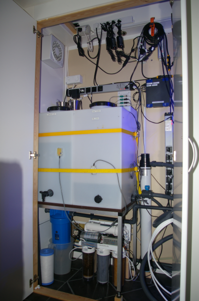 Min osmolator-funktion er kontrolleret af min Profilux-computer. Tager vandet fra mit osmose-reservoir, som automatisk bliver fyldt op. Jeg har også en hane på osmosetanken, så jeg kan tappe osmosevand til diverse andre opgaver.