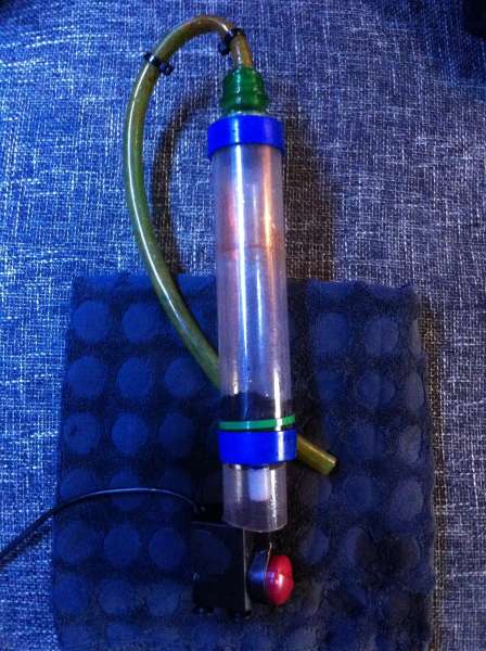 En DIY reaktor som jeg har lavet ud af en slamklokke (bundrenser), der bliver drevet af en Hydro Pico Evolution 1150.