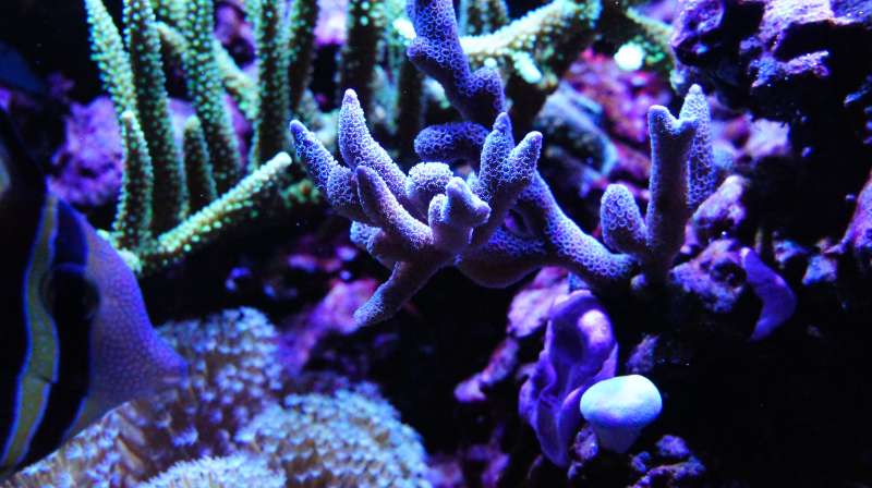 - Montipora ditata (blå, lilla og orange)