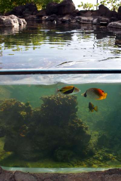 Waikiki Aquarium har, som så mange andre offentlige akvarier, en masse display tanke med både saltvand og ferskvand, men hvad der gør Waikiki Aquarium helt specielt i mine øjne er at de har koralrevs bassiner udendørs!