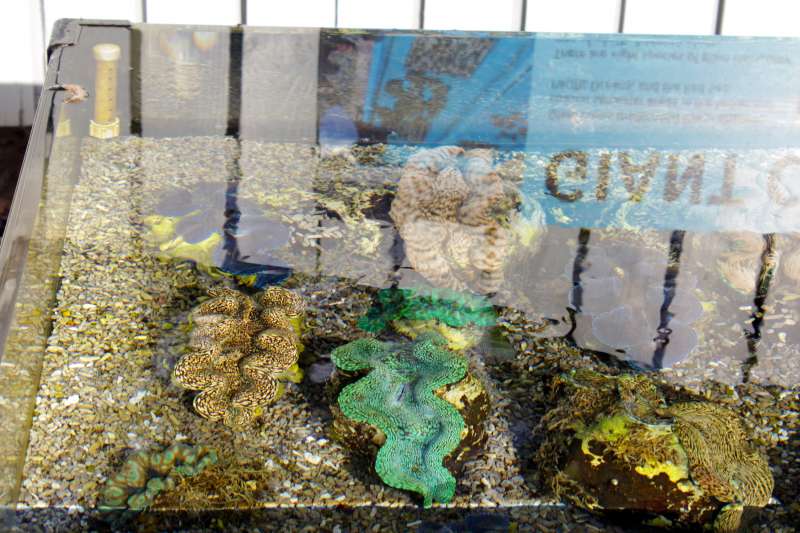 Imponerende samling af muslinger både i dette bassin, men også i de indendørs akvarier.