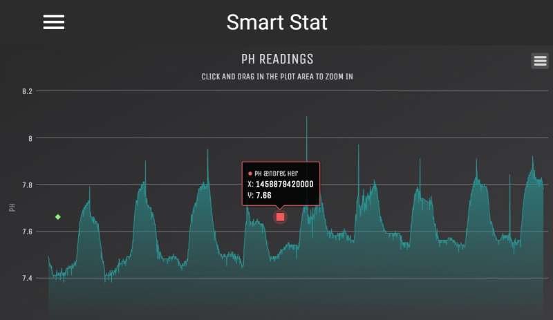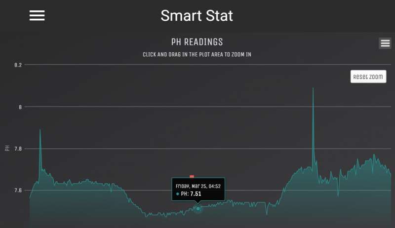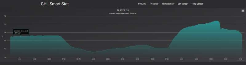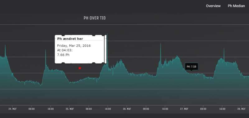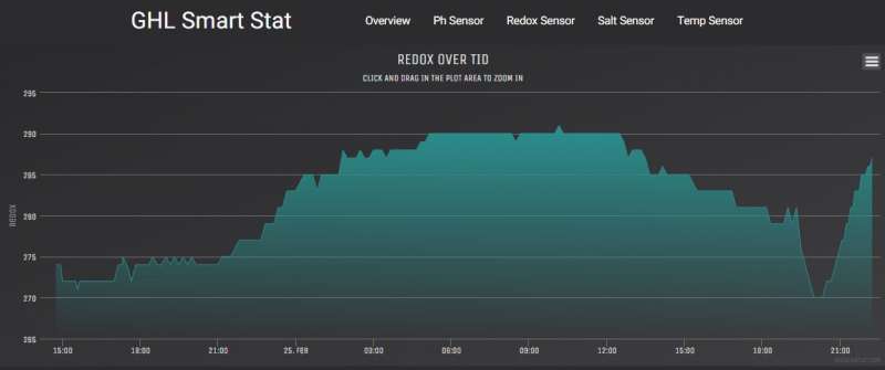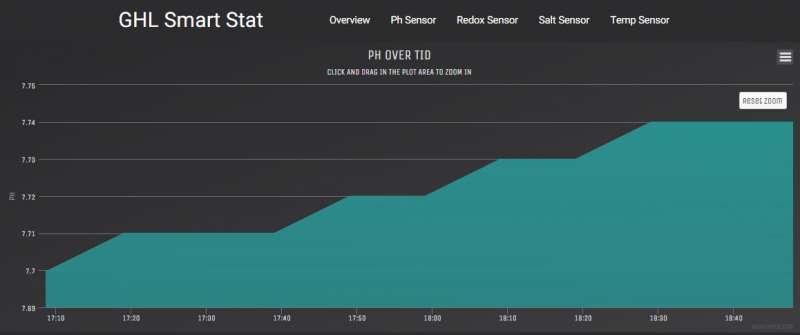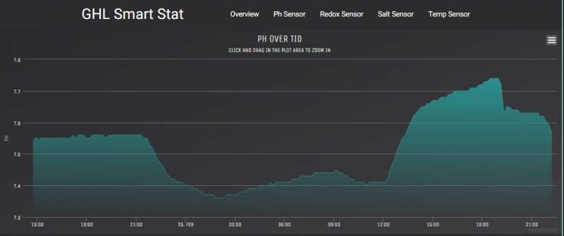 ph graf i chromebrowser. Man kan zoome ind på graferne og derved se flere detaljer f.eks. zoome ind mellem 2 tidspunkter af dagen, og se det mere detaljeret