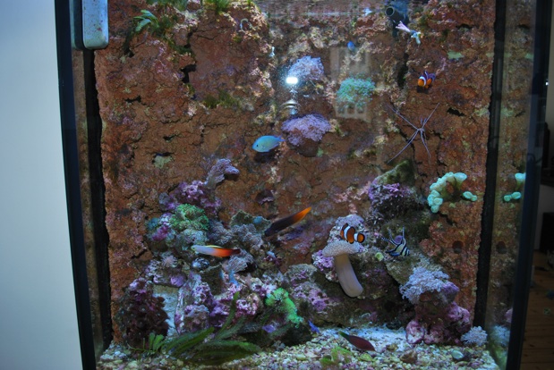 Tanken er, at det må kunne lade sig gøre at lave et lille akvarium og få fine koraller og fisk til at trives. Men det vil vise sig. Det er jo ikk meget større end et RSM selvfølgelig.
