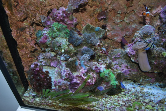 Desuden to eremitkrebs og enkelte snegle tilbage. Yderligere er der en dannebrogsreje. Der har ikke været dødsfald eller pletter på fiskene, og de trives fint sammen, pånær en enkelt chromis som permanent bor inde bag baggrunden i returrørets udhulning i keramikken.