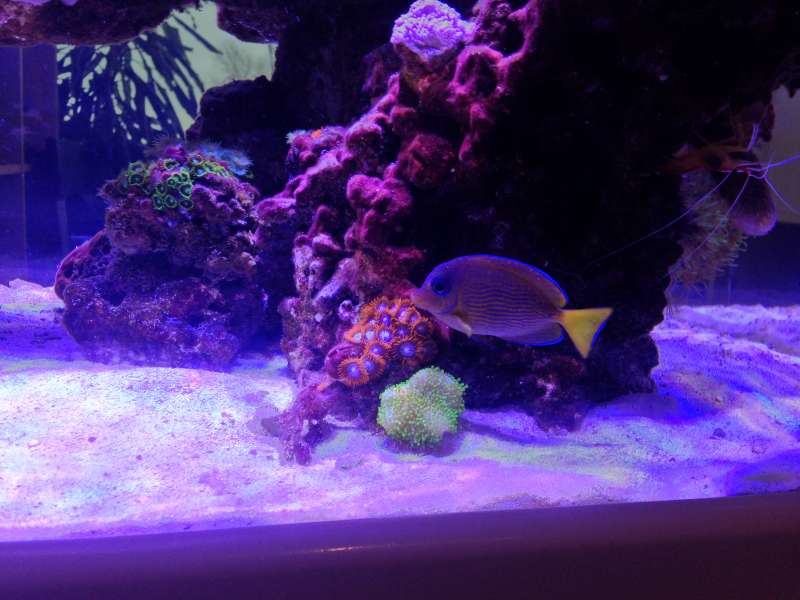 synes også selv lyset farve er helt perfekt. har lavet sådan at det efter kl 19 stille og roligt går over til fuld blå, så alle korallerne står og flasher ;-)