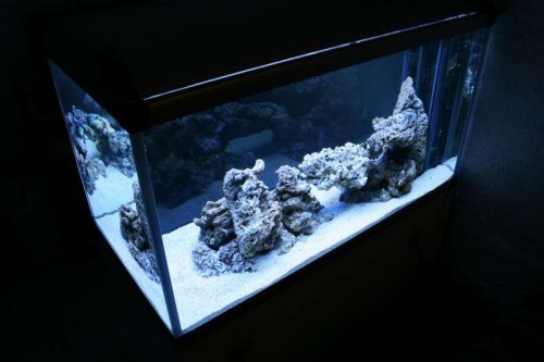 Jeg startede akvariet op i fredags den 2 sep. mine planer for akvariet er, at der primært skal LPS og SPS koraler i, og selvfølgelig den klassiske klovnfisk, lidt kirugfisk og så må jeg ellers med tiden se om jeg vil have andre fisk i, men nu skal det ihvertfald have lov til at stå og køre ind. så nu er det bare den satans ventetid jeg skal over