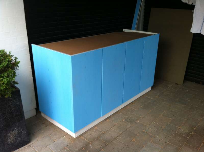 Møblet har jeg selv bygget af regler og hvide højglans køkkenlåger fra ikea.