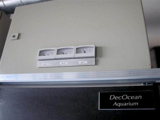 El-skab med 3 faser kun til akvariet og egen HFI. Amperemetre til hver fase. El-skabet er termostat styret med blæser. Lys- styringsskab med 4 * 400W elektroniske ballaster og 6 ballaster til T5 lys. Skabet er termostatstyret med blæser.
