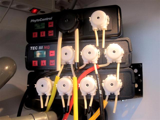Jeg har en Grotech PhytoBreeder 250 Plankton reaktor med en PhytoControl styre-computer. Jeg doserer ikke plankton i øjeblikket, da jeg skal finde en metode, der ikke giver det phosphatholdige vand med ud i akvariet, men kun den rene plankton. Det er også min plan at tilsætte zoo-plankton.