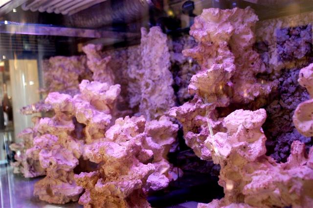 Da akvariet kun er to måneder gammelt, er der endnu ikke kommet kalk alger på nogen af stenene. Det hele ser derfor lidt hvidt ud, men det bliver forhåbentligt bedre med tiden
