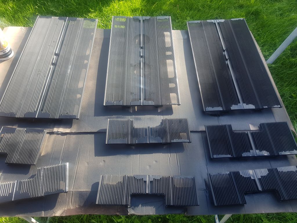 Jeg adskilte dem totalt, og har skåret dem til på mål. Lakeret dem med varmebestandig/kemibestandig matsort. Modificeret plaststykkerne. Forlænget div. Kabler til styringen som sidder eksternt.