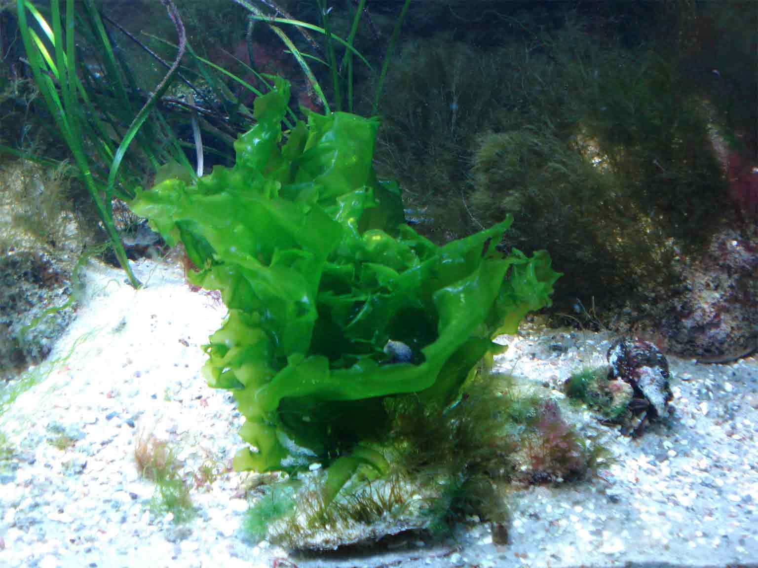 Der er kommet tonsvis af alger i forskellige farver, den flotteste er nok søsalaten der har vokset fra ingenting til 15 cm i diameter på en uge. En ny omgang ålegræs ser indtil videre ud til at klare sig.