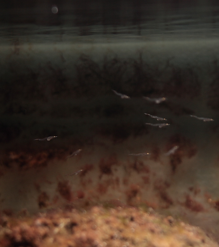Et billede af mine sønelikker, der er ved at blive fodret med levende mysis