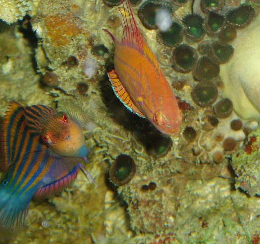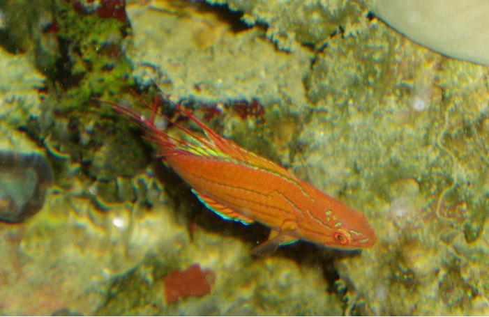 Fine fisk du har fået dig Lars :GO Mon ikke det med den 6 stribet gylte aftager med tiden så du kan beholde dem begge. De gange jeg har haft problemer med min er det aftaget efter en lille uges tid, men ellers kan jeg godt forstå hvorfor du har valgt at beholde din Paracheilinus filamentosus.