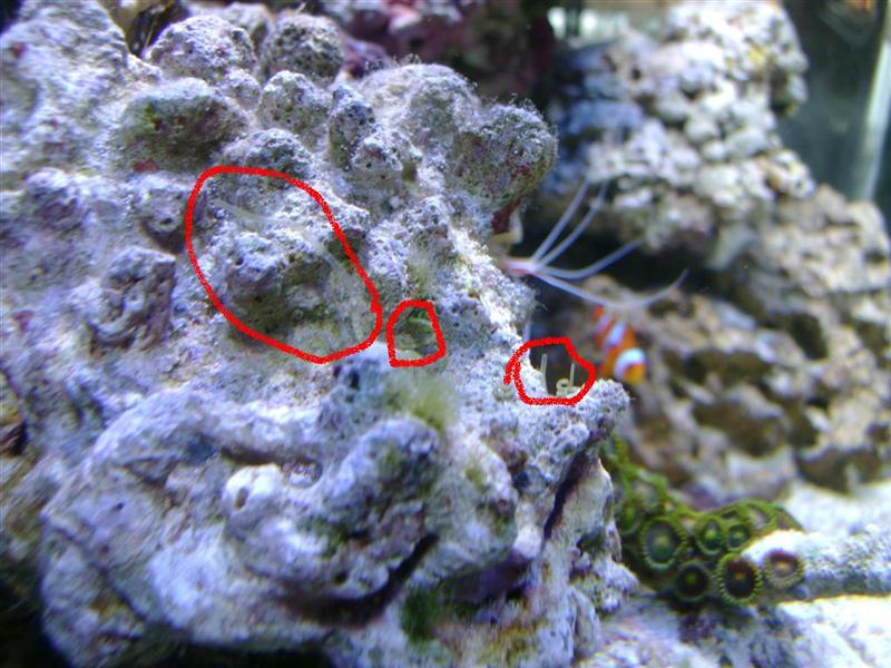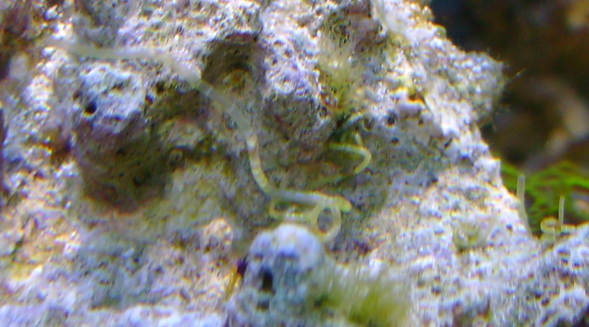 Det ligner lidt små græs plamager på stenene, rundt omkring, hist og her. De sidder gerne lige under korallerne, på de sten eller fragmentsten de står på. De er også lidt varieret i længde.