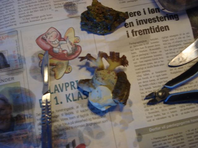 når man fragmenterer en syg koral er det MEGET vigtigt at man fragmenterer den et stykke over der hvor den er blevet hvid, samt at man bruger handsker til at håndtere fragmenterne. Og når man så har monteret dem, ikke at presse for hårdt på selve korallen.