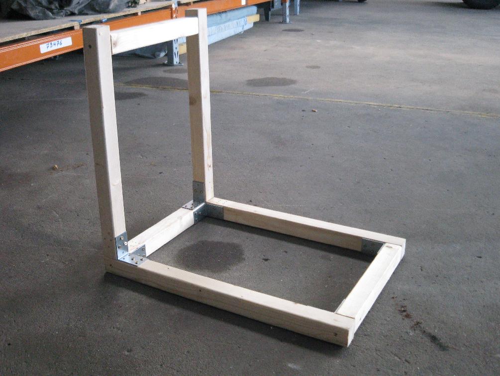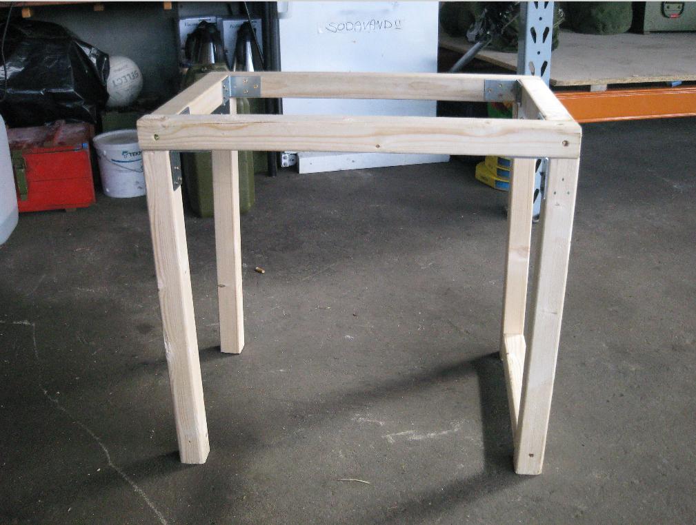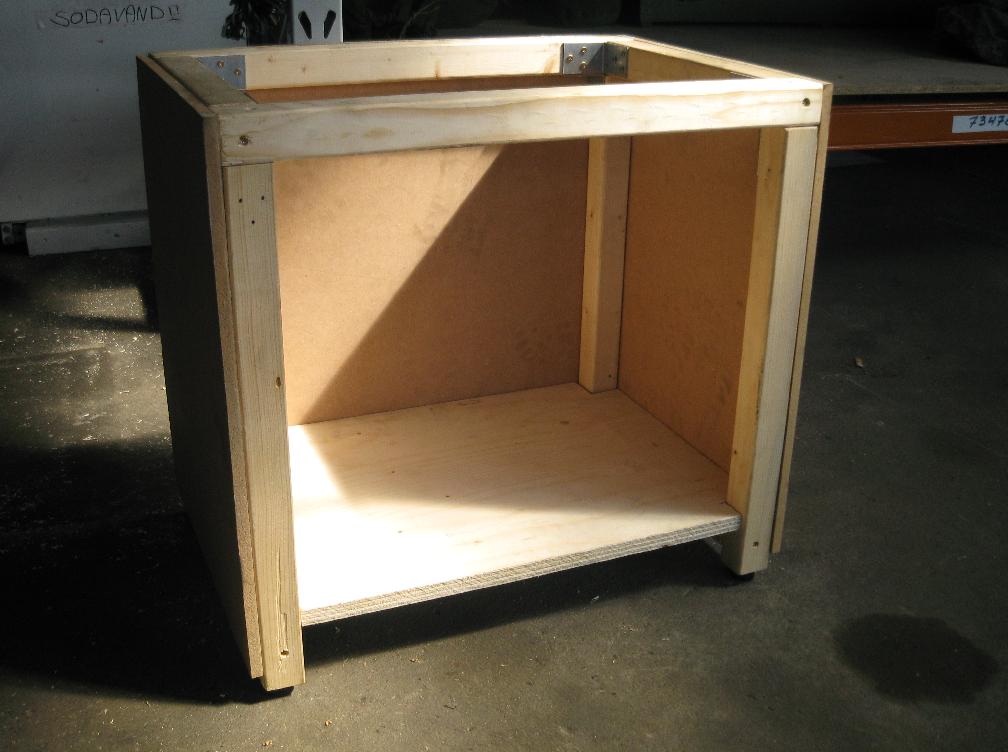 Til sidst vil jeg lige vise et par billeder af bordet som jeg har været ved at bygge i dag. Skabet er lavet af 45x45mm regler (Måske lidt overdrevet), på siderne er der brugt 12mm MDF og til bordplade og bund er der brugt 22mm laminatplade (tror jeg nok det hedder). På bordbenene er der monteret stilleskruer sådan at jeg er sikker på at jeg kan få det til at stå i vatter