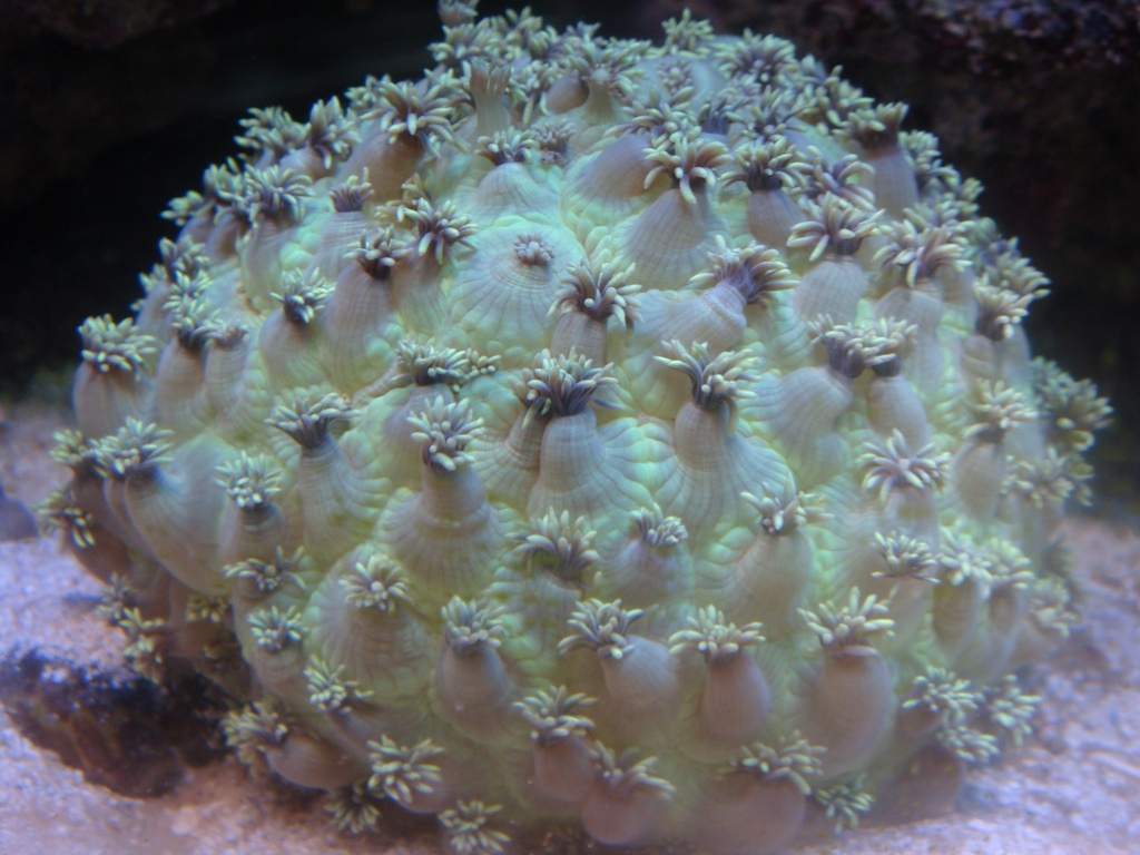 tja jeg ved ikke horfor min Goniopora lobata puster sig sådan op men måske der er nogen der kan hjælpe