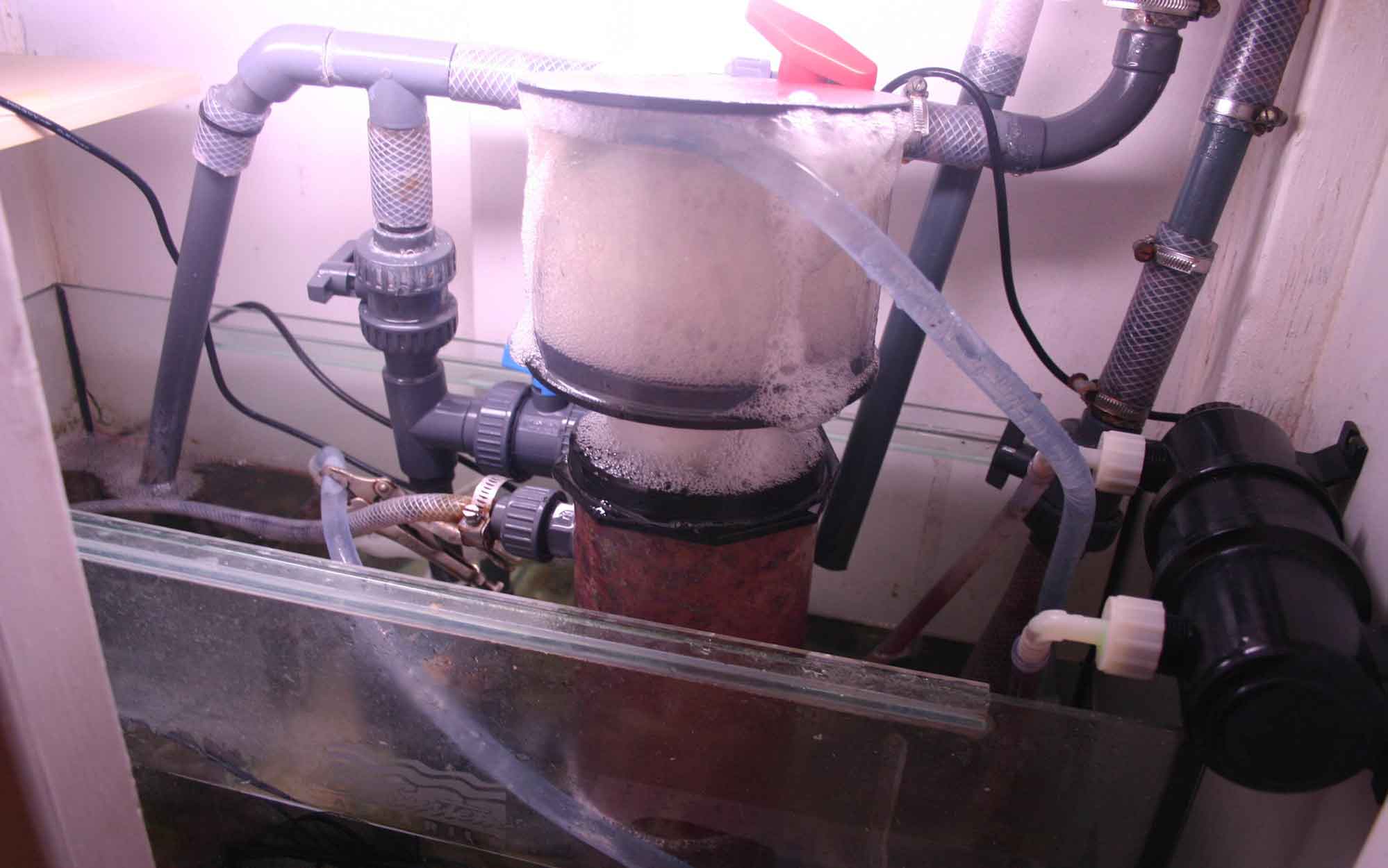 skummeren har skummet de første 60 l.vand af så har nu sat en en slange fra skummeren ned i sumpen så den ikke skummere mere afn sådan har den kørt i et døgn nu. Billedet er taget i morges.