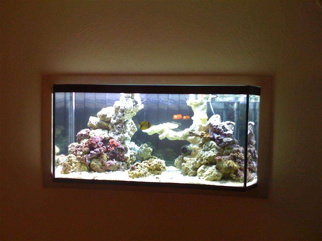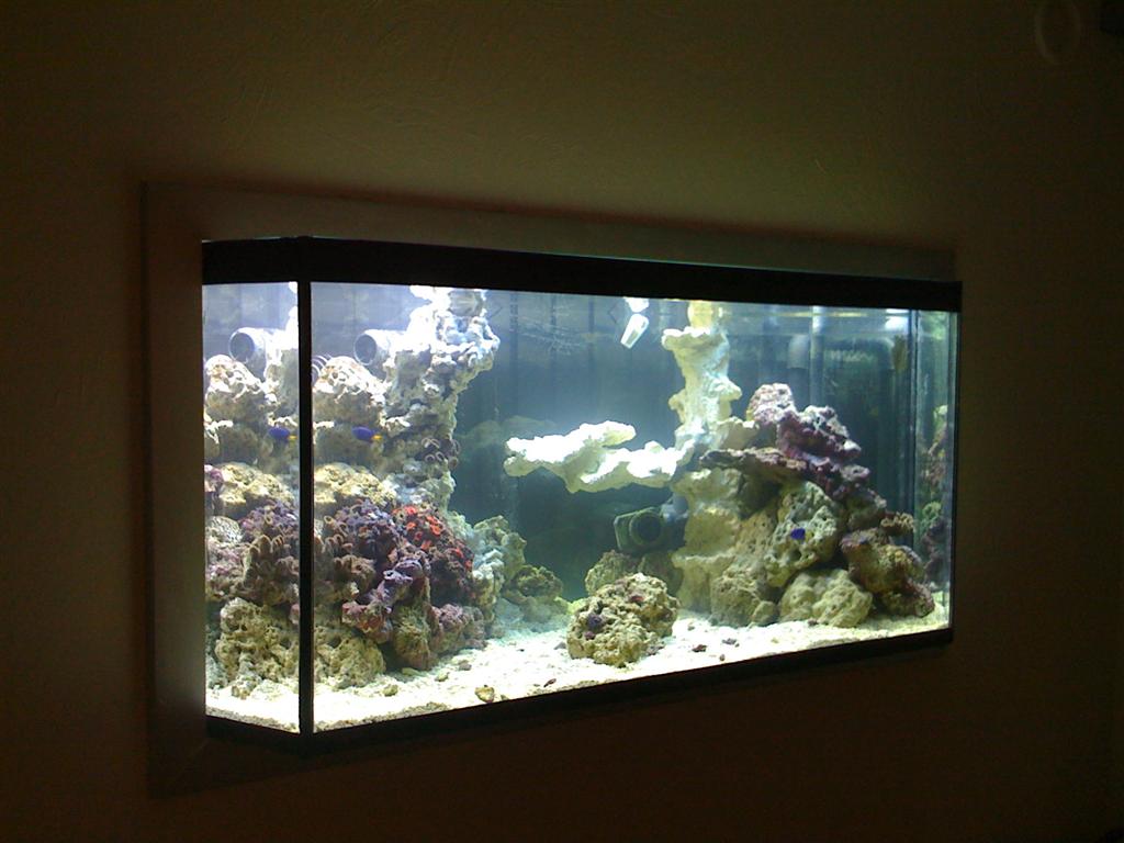 min plan (konens plan) er en blandet landhandel af fisk og så forskellige skiver i bunden lps og sps helt oppe under hqi der kommer nok et eller to t5 rør op for at give lidt mere lys da søjlerne tager meget af det den ene søjle er købt færdig og den anden er lavet af døde sten og muret sammen