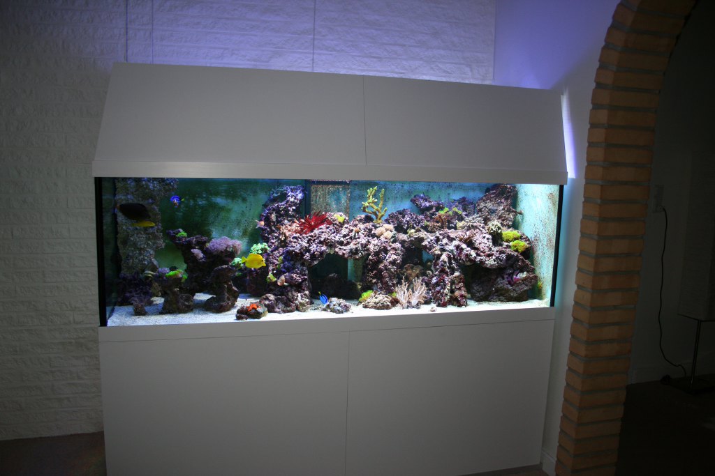 Mit ferskakvarium 877 liter weisglas i front sump 2x112 liter.