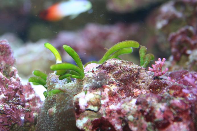 Købte samtidig også en fin sten med en grøn stenkoral... Den indeholdt desværre 2 grimme behårede krapper som jeg lige blev nødt til at bruge lidt tid på at få fjernet... Min gule kirug nåede at blive nappet i finnen inden jeg opdagede de var der