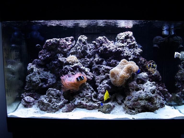 Jo da. lige pt. har jeg 2 stk klovnefisk, 1 stk paletKirurg ,1 stk gulKirurg ,3 stk gulhalet blå damsler og en snowflake muræne.