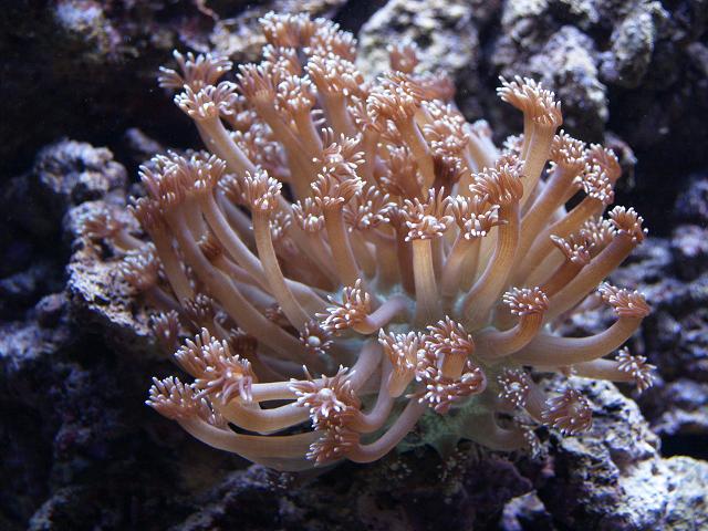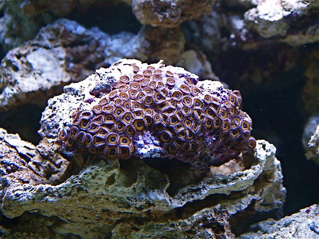 Hej det var den første jeg købte, den er købt i dyfo i Svendborg og den sidder på en stor musling som er gået over i to, og der sidder polypper på begge halvdele så det er fedt de breder sig helt vildt, jeg har også en i grøn men hvad det er for en ved jeg ikke.
