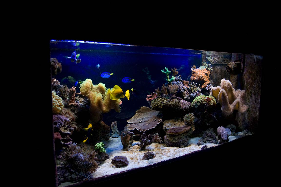 Akvariet er på 550L og er fra 2004, det blev flyttet 2 gange det først år jeg havde det. I de sidste 4 år har det været indbygget i væggen i vores køkkenalrum.