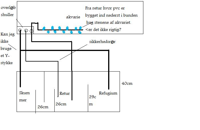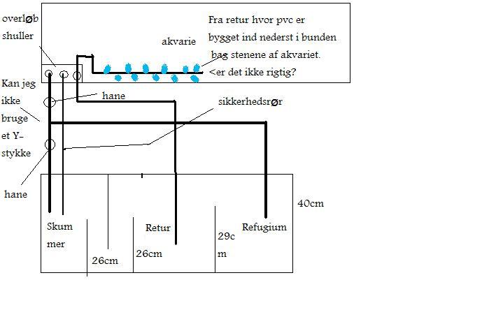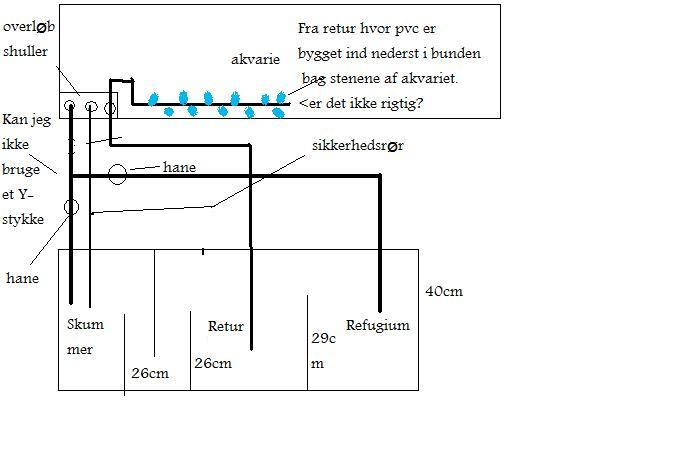 Her er et nyt billede. Det kan godt være lidt svært første gang at samle pvc indtil man fåår noget mere erfaring med det.Musiker skrev:Husk at du skal have noget til at bryde hævert effekten på retur røret. Vandet stopper først med at løbe fra akvariet til sumpen når det rør suger luft ind..