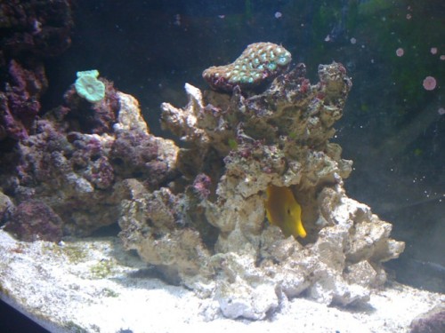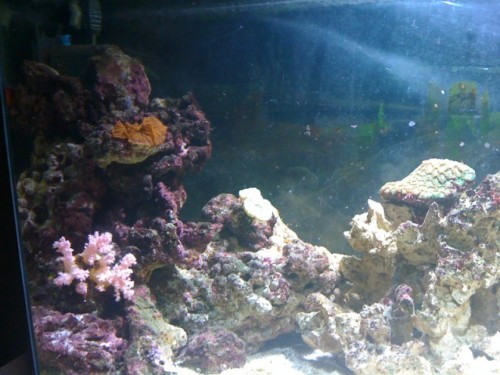 Der er ikke taget billeder med HQI'en tændt endnu - men det kommer, skal også have skiftet det ene T5 rør med et mere blåt et. og et tunz nano powerhead til at smide ned mellem stene