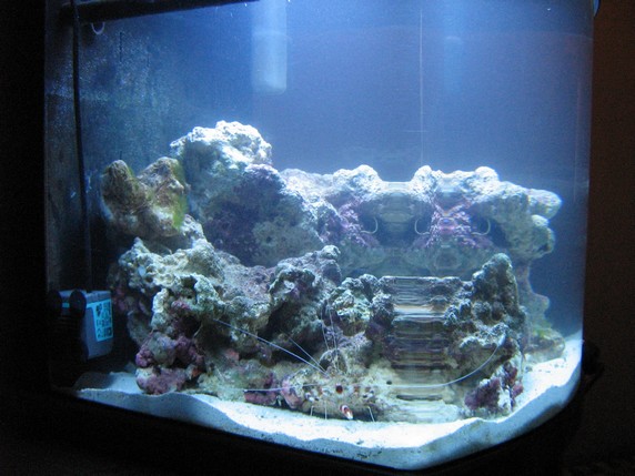 Der er blevet flyttet lidt på de små sten, der er en turbo snegl i som skider helt vildt, og en Stenopus hispidus som tror den ejer det hele, en Tridacna maxima (Guld)