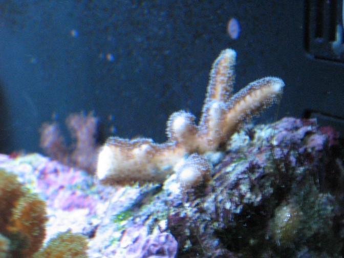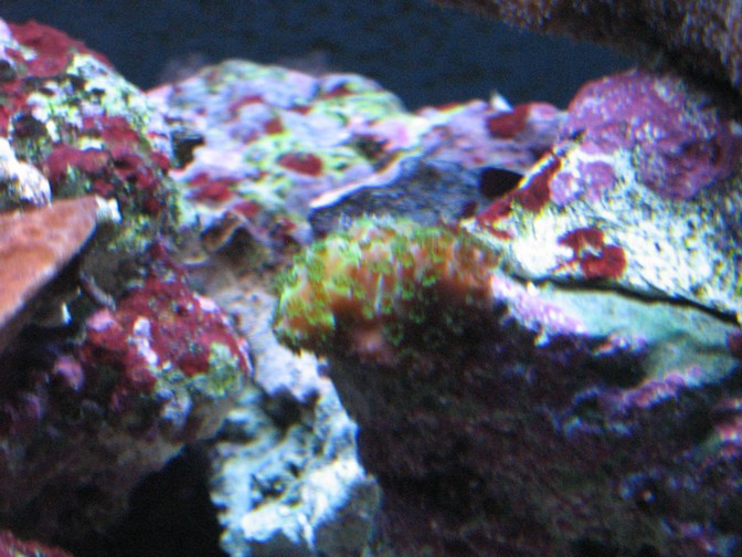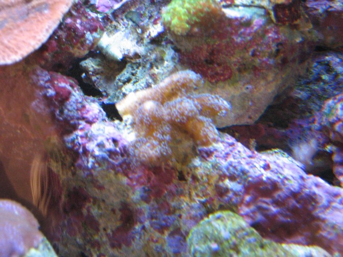 Acropora grøn og rødbrun lille (mener jeg, da den sad på den koral jeg købte)