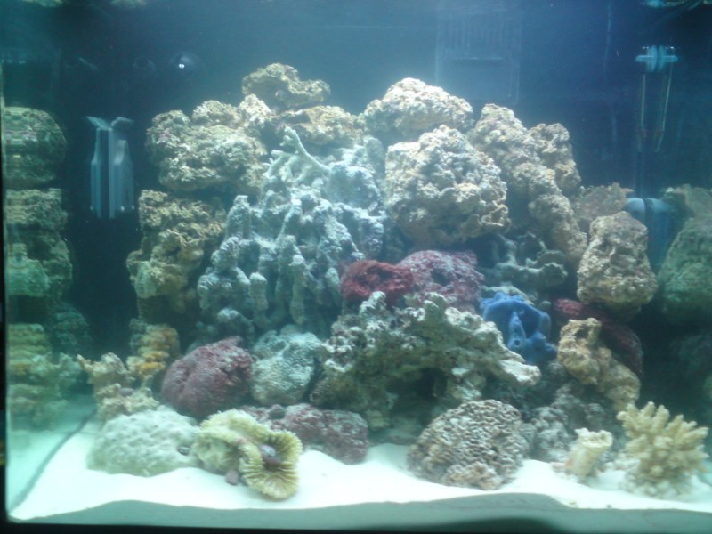 Jeg glæder mig også til at på nogle sps koraller i, men jeg synes at de døde er rigtig flotte og jeg har en ide om at de med tiden vil fungere som flotte LS. Nu må jeg se om de bliver dækket af alger og der kommer lidt liv i. De døde koraller skal sættes lidt ind i revet da jeg synes at det giver en "naturlig" effekt.