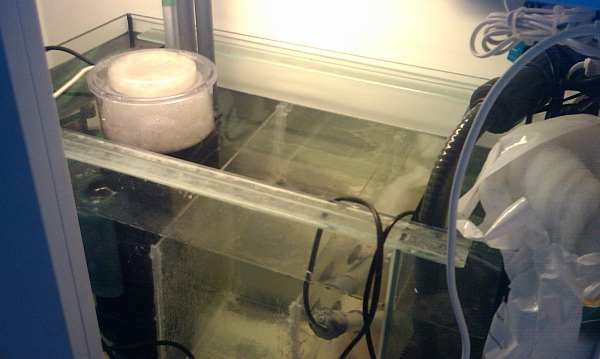 IKS Vario 3 plus Der er ingen baggrund i akvariet da min Juwel baggrund (sad i akvariet da jeg købte det) valgte at gå løs da saltvandet var blandet og fyldt i akvairet