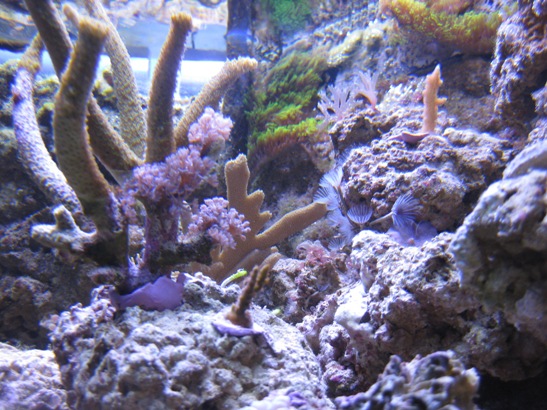 Der er sket lidt i baljen, udover de beboere der er tilføjet (se billederne) så har jeg sat yderligere 4x24w over baljen. De blev til 2x fiji pink og 2x alm. hvid. Grunden til de hvide, er at jeg ikke syntes min HQI nåede ud i hjørnerne af akvariet. Og jeg må da selv sige, at det bestemt har hjulpet. Derudover har min acrapora begyndt at folde sig ud på samtlige sider, i stedet for kun den side der pegede mod HQI'en.