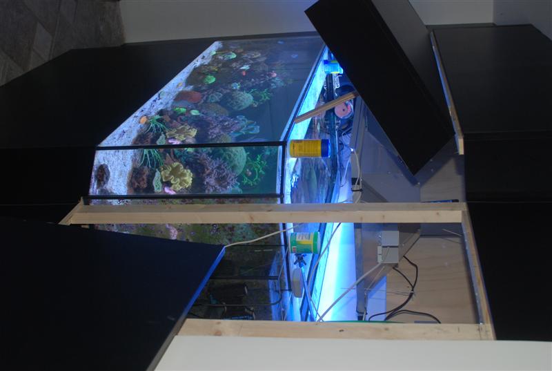 Her er lidt billeder så. Lågen over akvariet og de to låger ud for pumpetårnene kan åbnes.