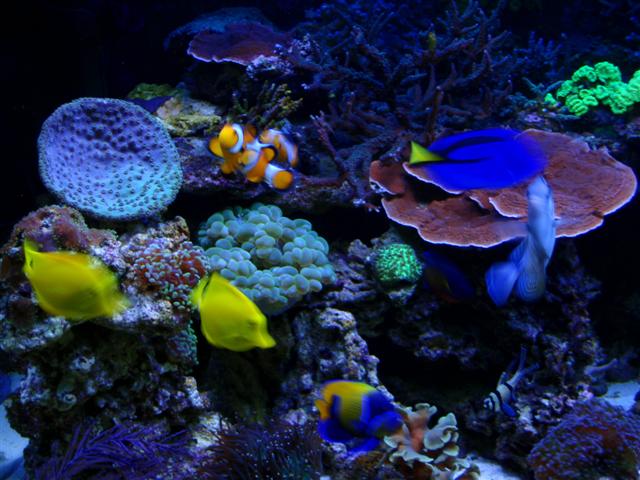 Jeg er vild med lysfordelingen ved T5, alle de mørke hjørner forsvinder i akvariet og man får meget mere lysplads til sps´erne. Mit væsentligste problem i øjeblikket er luksus pladsproblemer i baljen.