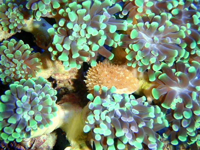 Midt i min hammerkoral er det ligesom der vokser en anden koral synes ikke det ligner noget fra hammerkoralen men er der nogen der muligvis ved hvad det er ???