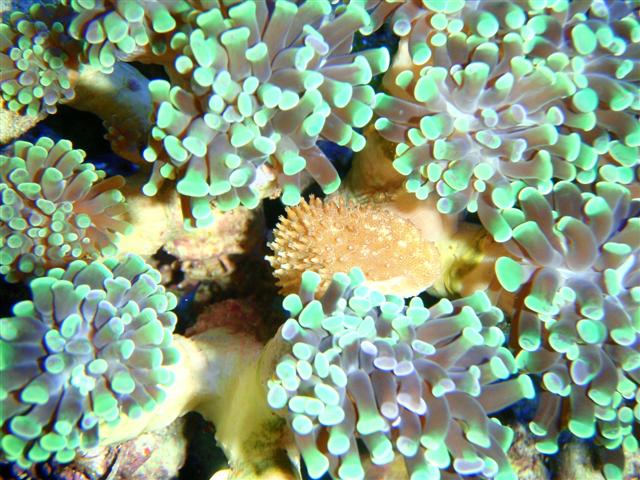 Midt i min hammerkoral er det ligesom der vokser en anden koral synes ikke det ligner noget fra hammerkoralen men er der nogen der muligvis ved hvad det er ???