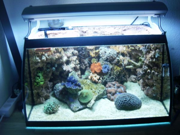 fint akvarie.. har selv det samme akvarie.. Den er flot den blålilla Favia" target="_blank" class="postlink autolinks">hjernekoral du har som står på sandet.. :)