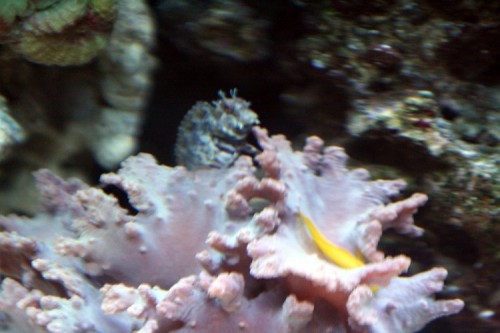 Jeg er meget ny i det her, så hvis billedet ikke virker eller kan ses, så må jeg prøve igen, har lige startet en lille balje op med 12o L vand , lidt sten og koraller, og efter som salt, temp, nitrit og nitrat er fine, kom jeg et par fisk i.