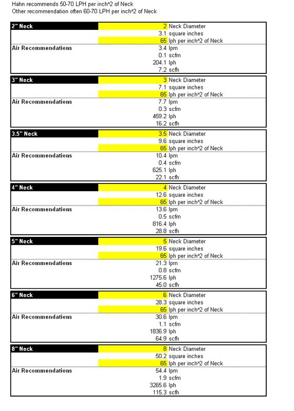 Størrelsen af afgangs røret skal passen med luftmængeten og luftmængeten skal passe med volumen. Jeg syntes der er en tendens til at producenten opgiver deres skummer anvisninger er = luftmængeten (Luft pr time = antal liter akv.)