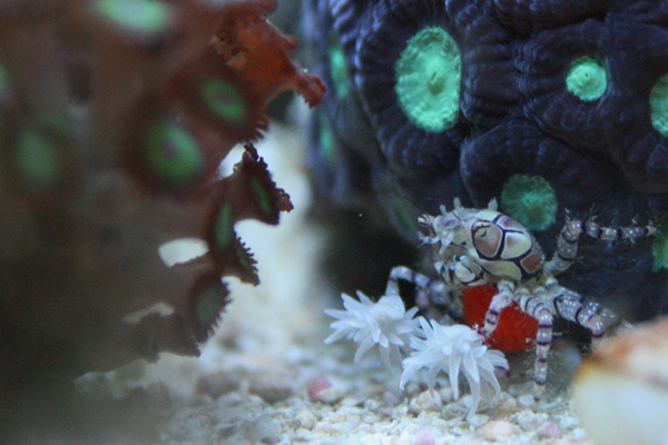 Idag var pom pom krabben(lybia tesselata) ude og vifte lidt med sine små anemoner.
